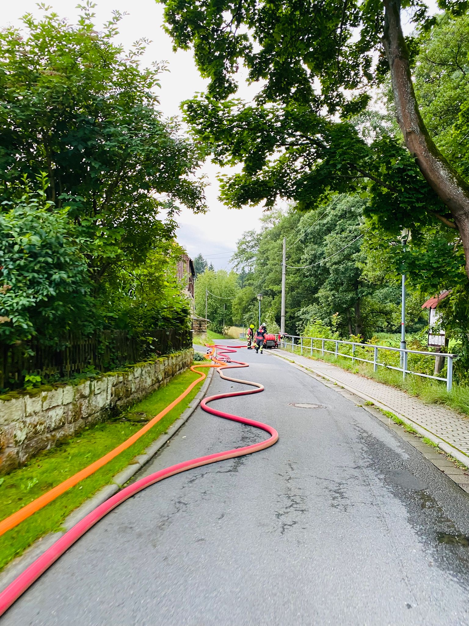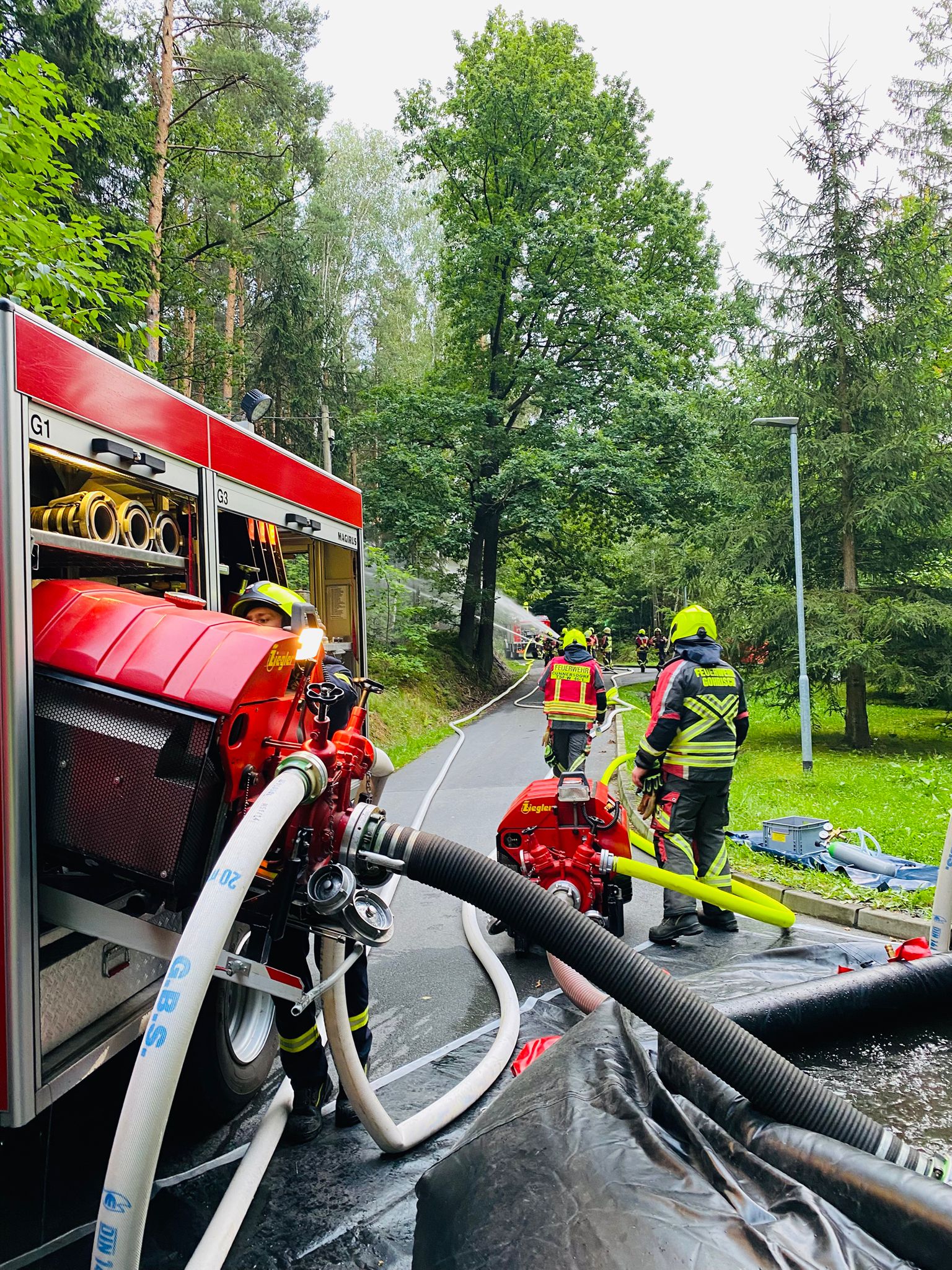 Die @feuerwehr_gem._gohrisch führte am 30.07.25 eine Einsatzübung durch. Da die OFW Pfaffendorf zu bestimmten Einsätzen in die Alarmfolgen eingebunden ist, waren die Pfaffendorfer Kameraden bei der Übung dabei. Von der Wasserentnahme aus dem Bach über den Aufbau einer langen Wegstrecke bis hin zur Kommunikation mit der Forstverwaltung lieferte die Übung interessante Daten.