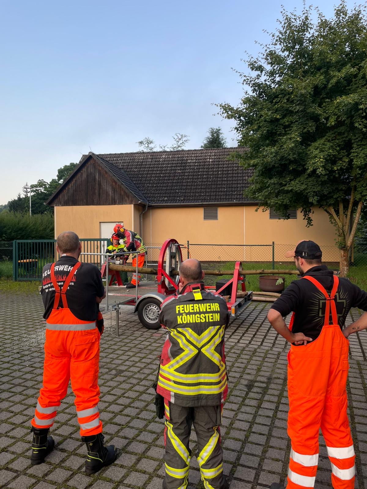 Beim Dienst am 5.8. beschäftigten wir uns gleich mit zwei wichtigen Themen: Motorkettensägenausbildung am Baumbiegesimulator und Tür- bzw. Fensteröffnung.