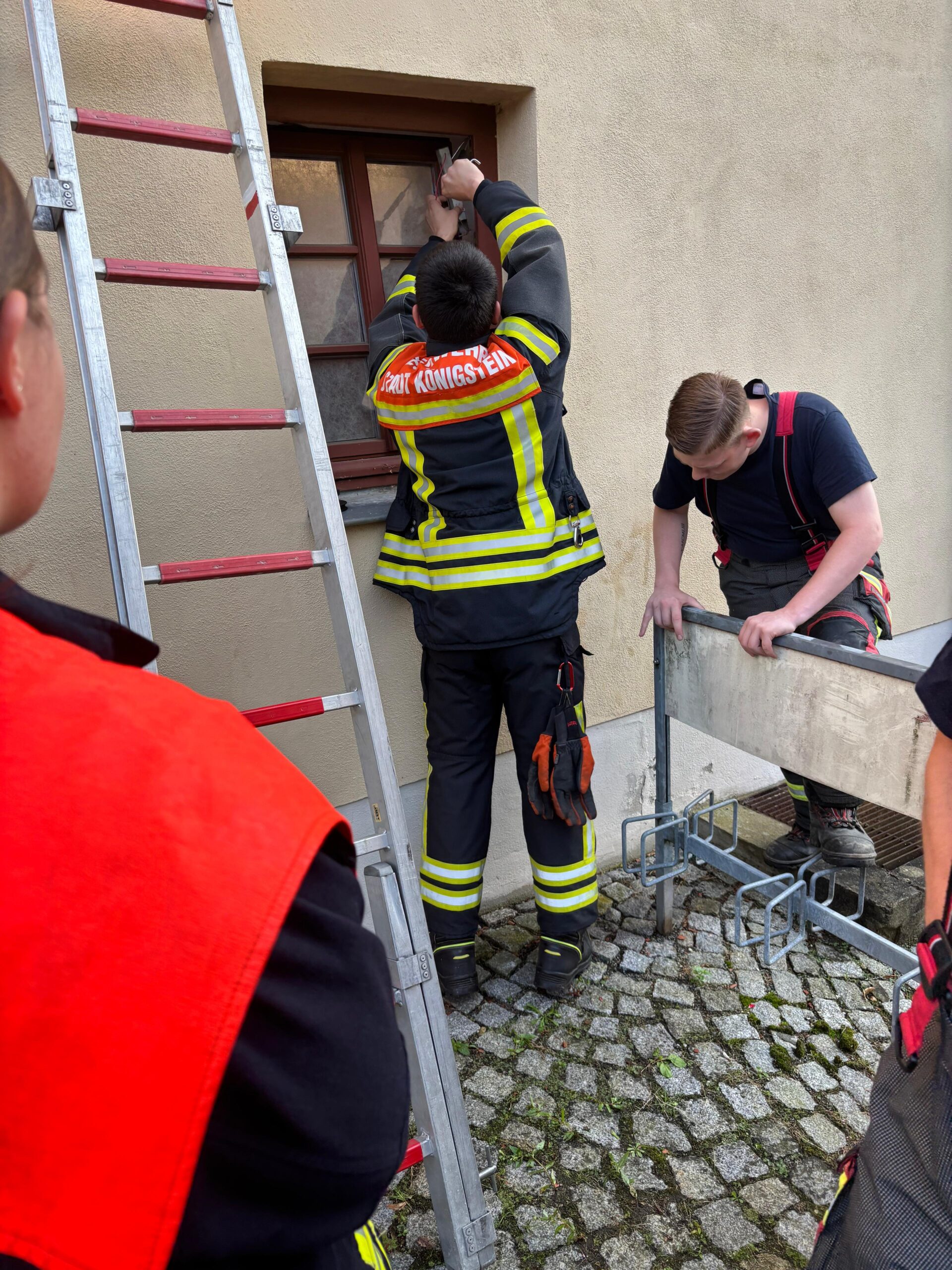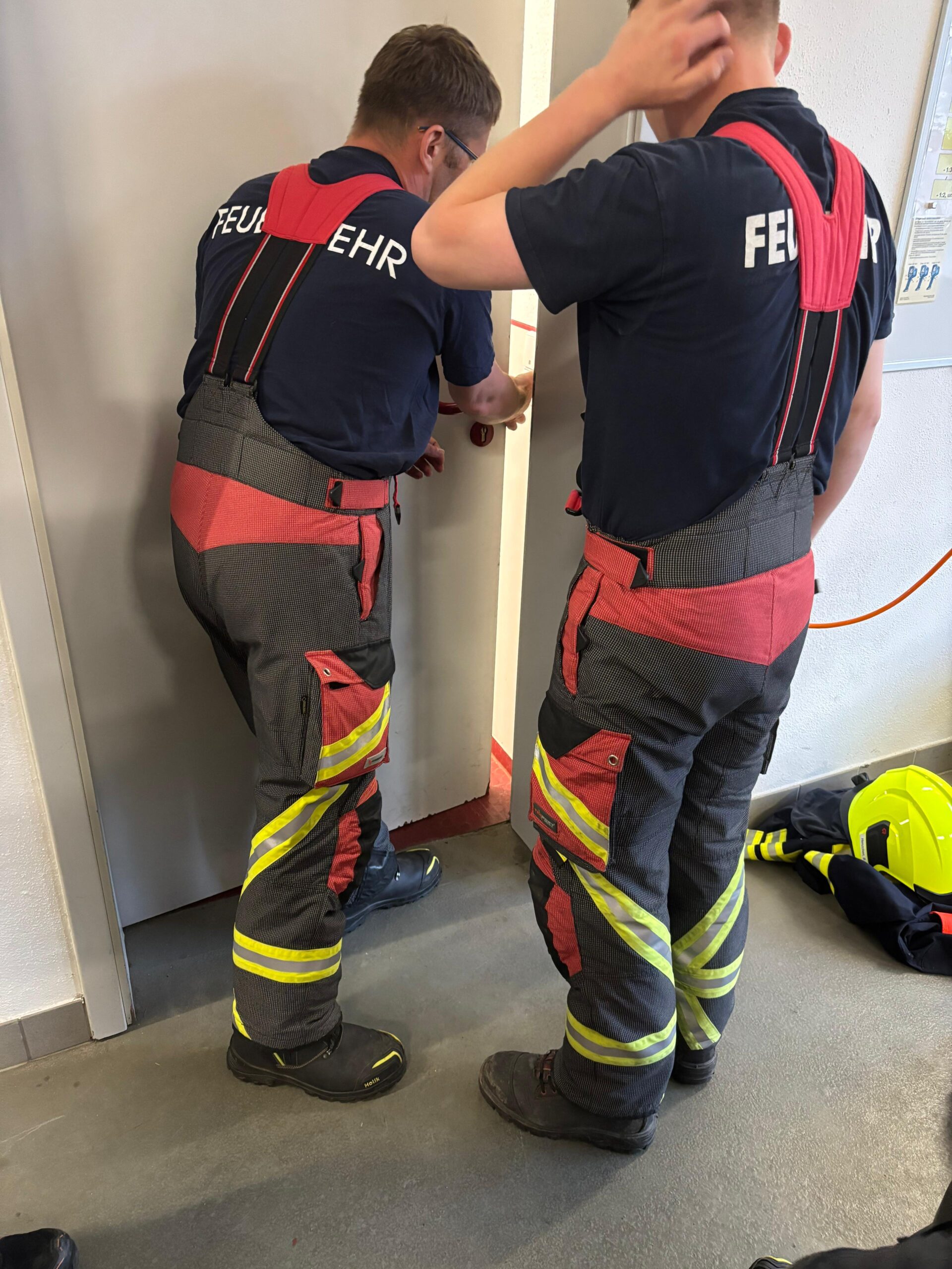 Außerdem wurde die Tür- und Fensteröffnung beübt, das ist im Ernstfall wichtig um schnell und mit möglichst wenig Schaden zu Personen vorzudringen, die sich in ihrer Wohnung in einer Notsituation befinden, beispielsweise bei einem medizinischen Notfall, und die Tür selbst nicht mehr öffnen können.