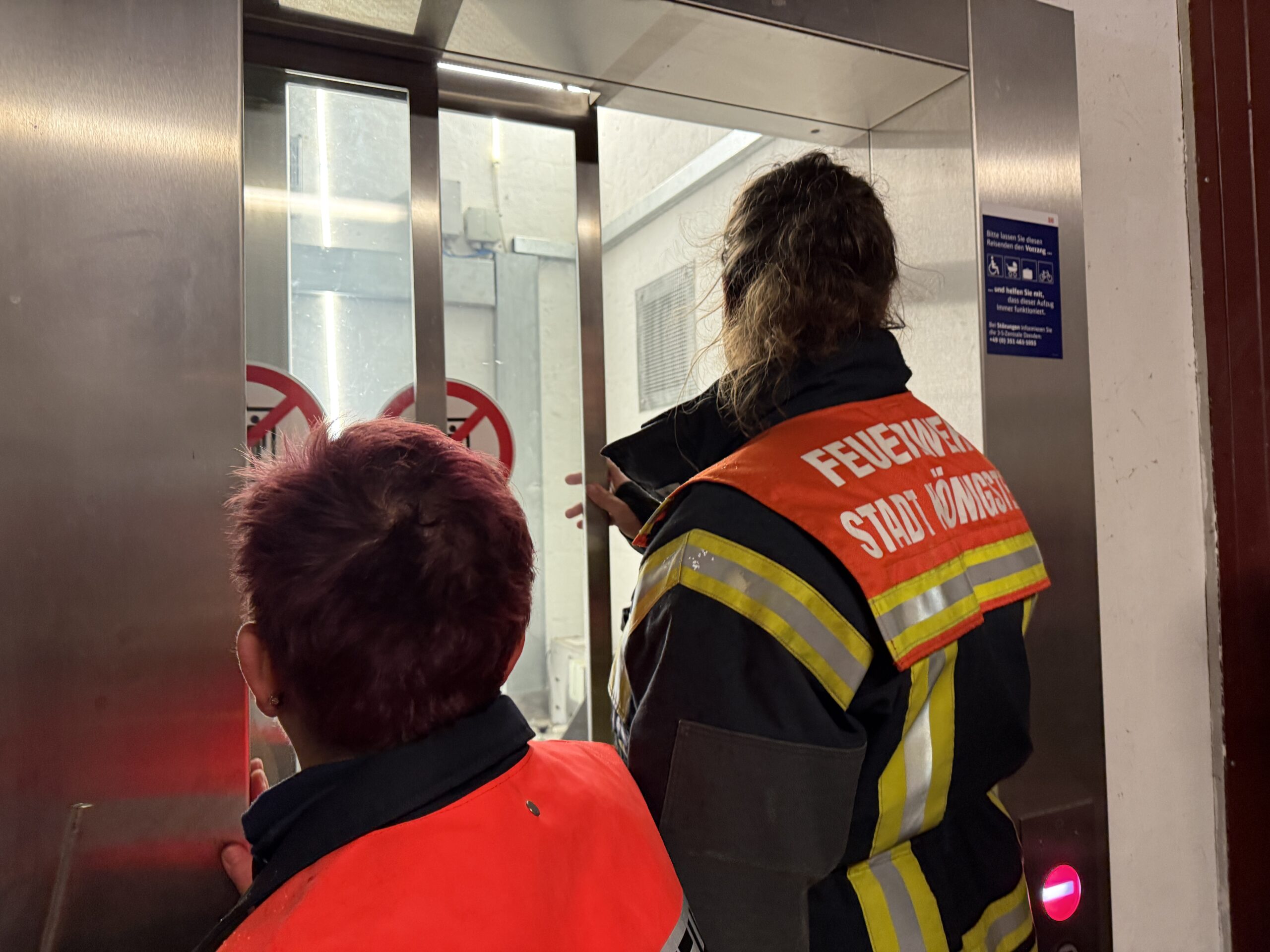 Auf dem Bahnhofsgelände erklärten uns Mitarbeiter der DB die Steuerung des Aufzuges und die Vorgehensweise im Falle eines Steckenbleibens des Aufzuges. Danach durfte jeder Kamerad das zuvor erlernte Wissen praktisch anwenden.