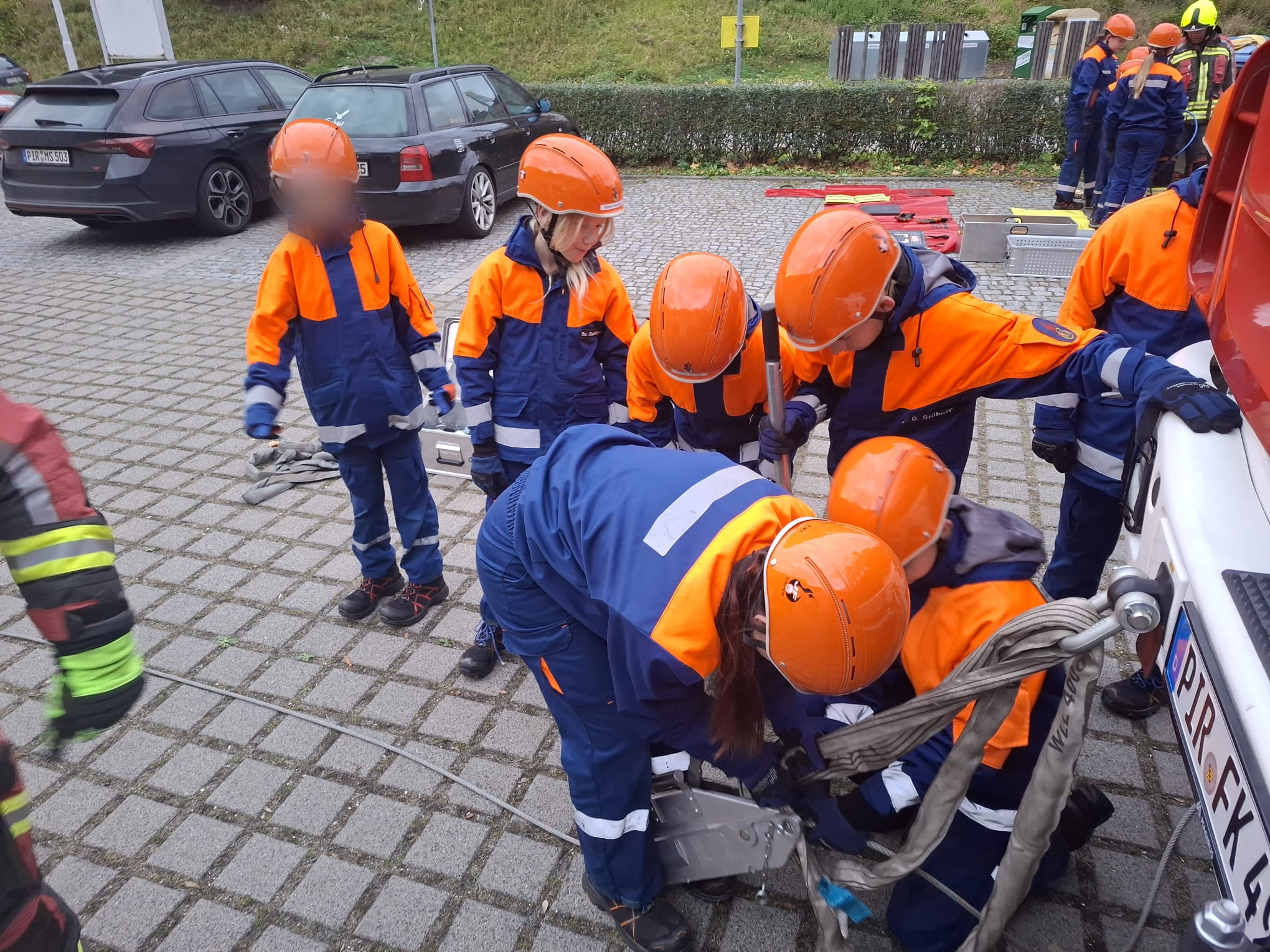 Zum Thema Ziehen wurde sich der Mehrzweckzug angeschaut. Bei beiden Stationen wurde jeweils der Aufbau der Gerätschaften und deren Einsatzzweck besprochen.