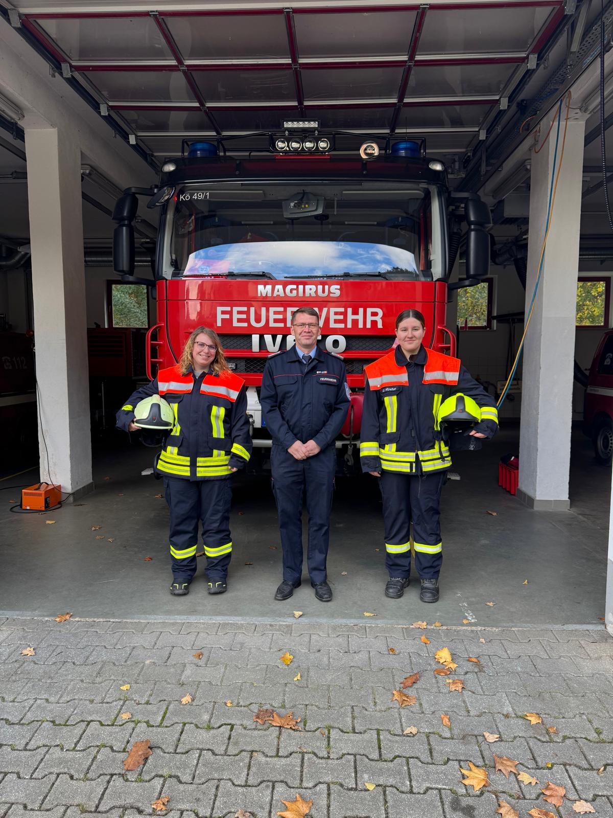 Im Praxisteil wurden hauptsächlich die Gruppe im Löscheinsatz, aber auch kleinere technische Hilfeleistungen geübt. Am Samstag, den 25.10.25, haben beide die Prüfung mit Bravour gemeistert.