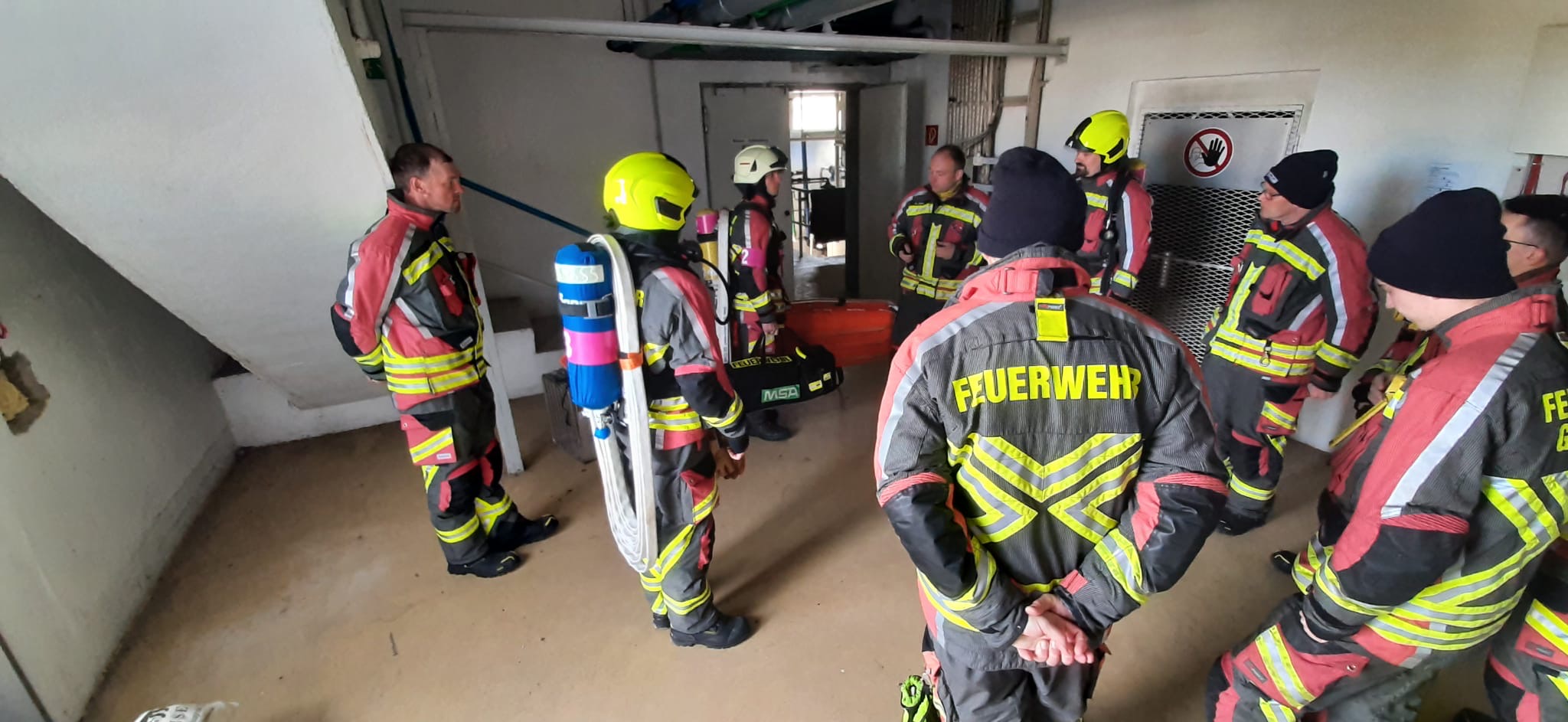 Beübt wurden die Aufgaben innerhalb des erweiterten Sicherheitstrupps, sowie das Lokalisieren und Retten eines verunfallten Geräteträgers.