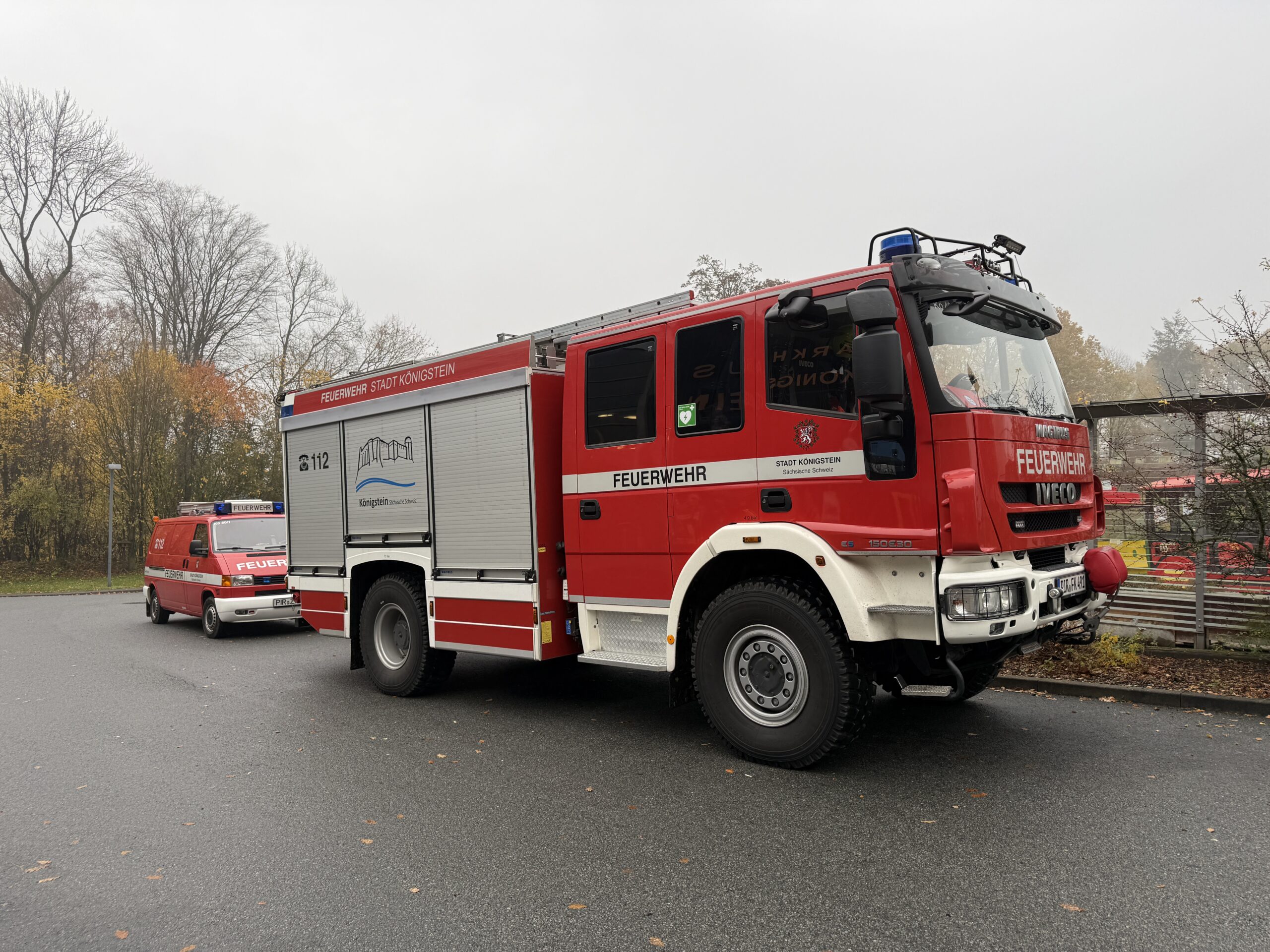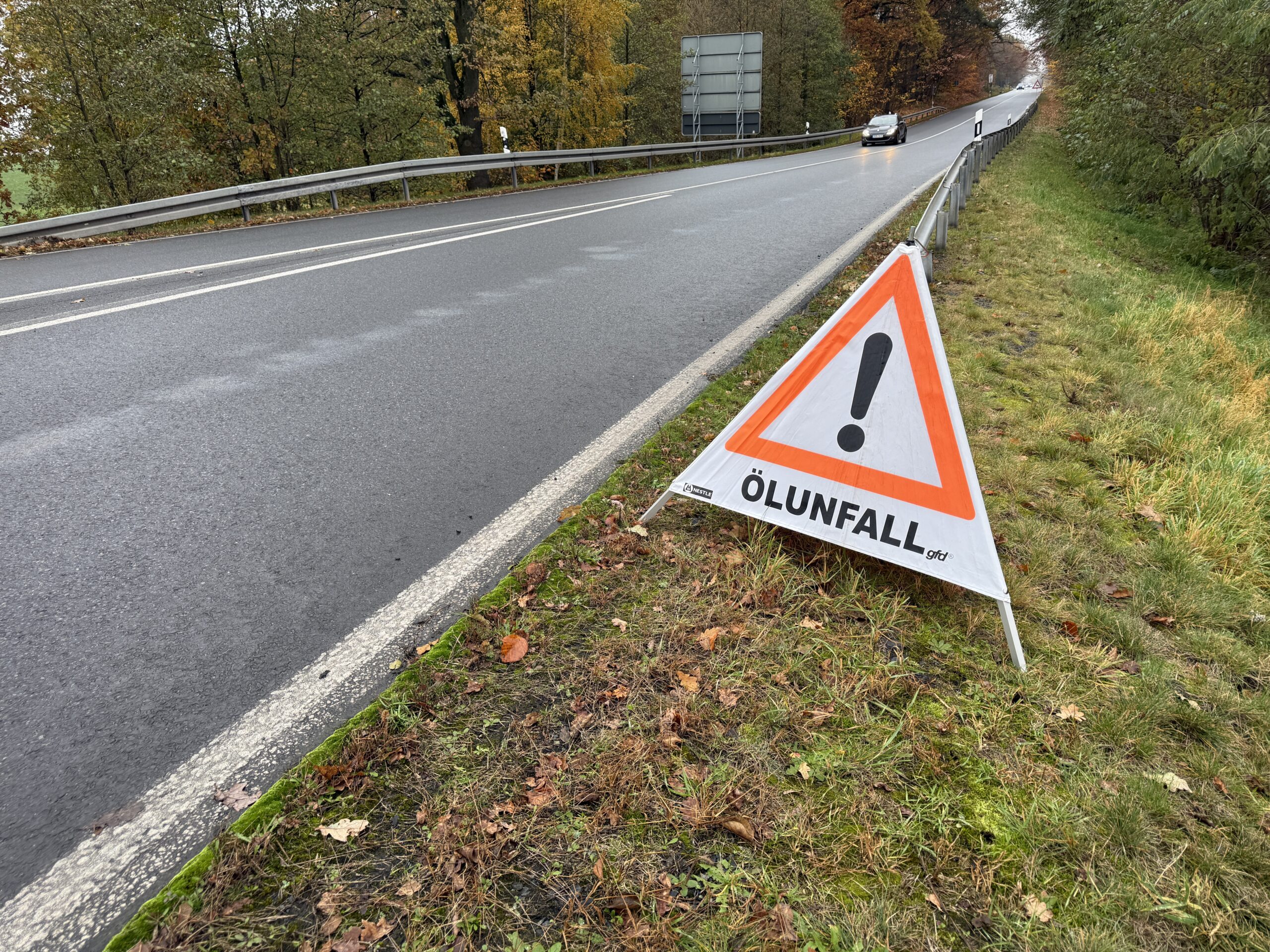 Eine Ölspur rief uns auf der B172 auf den Plan. Wir ermittelten zunächst, bis wohin sich die Spur erstreckte, sicherten die Einsatzstelle mit Schildern ab und übergaben diese anschließend der Polizei.